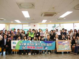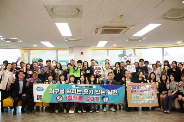 [한국뉴스타임=편집국] 경기도농수산진흥원은 21일부터 27일까지 기후변화 주간을 기념해, 전 직원이 참여한 1회용품 사용 줄이기 실천 서약식을 비롯해 ‘지구를 살리는 용기 있는 실천, 1회용품 OUT!’ 캠페인을 19일 진행했다.