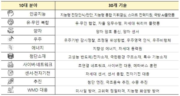 먼저, 10대 분야 30개 국방전략기술을 선정했다.