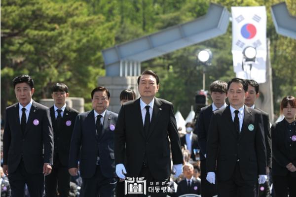 오늘 기념식은 10주기 기념식에만 대통령이 참석하던 관례를 깨고 2007년 이후 16년만에 참석한 것으로, 윤 대통령은 지난해에도 당선인 신분으로 제62주년 4·19혁명 기념식에 참석했다.