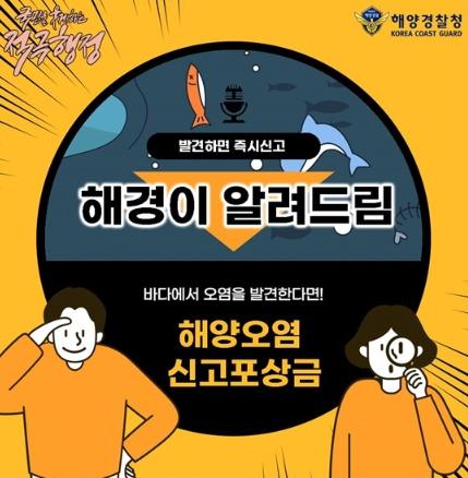 '변경' 해양오염 신고포상금 지급기준을 완화하여 오염상황만 신고해도 추후 행위자 적발 시 포상금을 지급합니다.