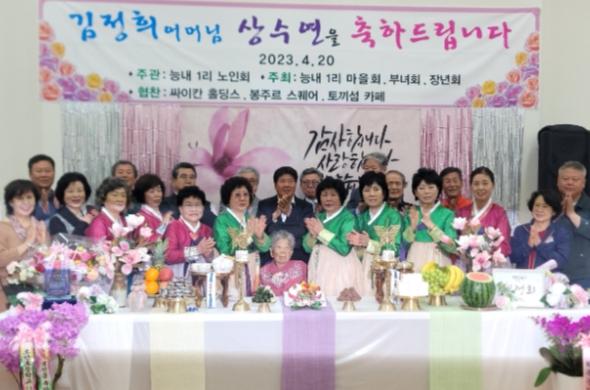 능내1리 노인회 조기환 회장은 “주위에서 흔히 볼 수 없는 100세 어르신 축하잔치를 우리 마을에서 하게 돼서 매우 기쁘며, 어르신께서 만수무강하시길 염원한다.”라고 전했다.