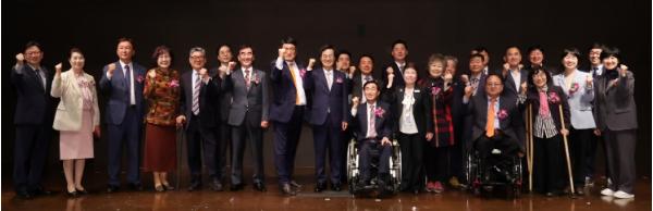 이날 ㈔경기도장애인복지단체연합회 주최로 화성시 라비돌 리조트에서 열린 행사에는 도의회 최종현 보건복지위원장(더민주, 수원7)과 박재용(더민주, 비례) 의원을 비롯해 김동연 경기도지사, 이세항 경기도 장애인복지단체 연합회장, 김기호 경기도 지체장애인협회장 등 300여 명이 참석했다.