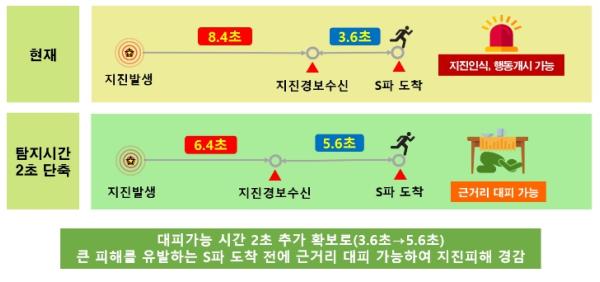 지진탐지 시간 2초 단축으로 지진 대피 가능 시간 ‘골든타임’ 추가 확보