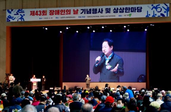 [한국뉴스타임=편집국] 남양주시는 20일 제43회 장애인의 날을 맞아 남양주체육문화센터 일원에서 ‘우리 함께’라는 주제로 기념행사를 개최했다.
