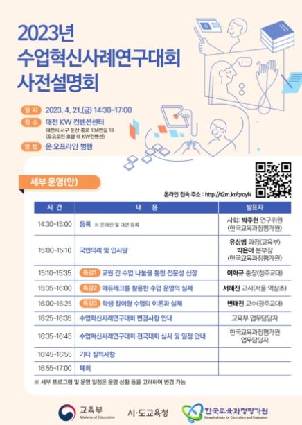 [한국뉴스타임=편집국] 교육부와 한국교육과정평가원(원장 이규민)은 수업 혁신 사례 발굴과 확산을 위해 ?2023년 수업혁신사례연구대회?를 개최한다.