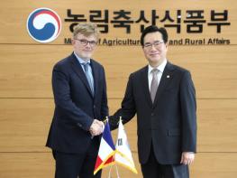 [한국뉴스타임=편집국] 정황근 농림축산식품부장관은 4월 20일 오후, 정부세종청사에서 마크 페노(Marc FESNEAU) 프랑스 농업식량주권부 장관과 면담을 통해 양국 간 농식품 분야의 협력 강화방안에 대해 논의했다.