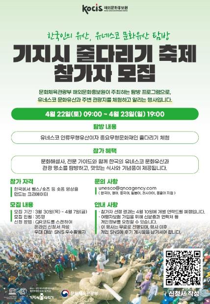 참가자들은 4월 22일 탐방 첫날, 볏짚 3만 단으로 길이 200여 미터 줄을 제작하는 현장을 방문하고, 4월 23일 두 번째 날은 40톤에 달하는 두 개의 초대형 줄이 하나로 결합하는 과정을 관람한다. 이어 주민들, 관광객 수만 명과 함께 줄다리기 대결에 참여한다. 또한 한국 전통 줄다리기 관련 퀴즈, 줄다리기 행사 관련 짧은 영상 제작 등 여러 가지 미션을 수행하면서 한국 고유문화를 더욱 깊이 알아갈 예정이다. 특히 모든 체험과 탐방은 누구나 볼 수 있도록 예능 형식의 영상으로 제작해 코리아넷 유튜브에서 공개할 계획이다.