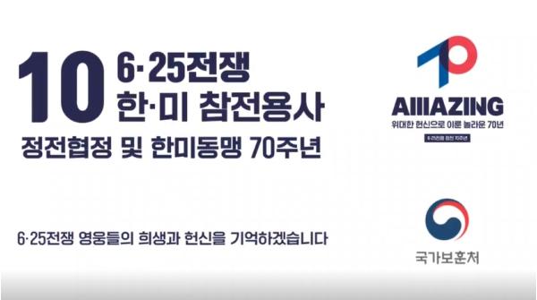 이번 영상은 70년 한미동맹의 출발점인 한국전쟁을 기점으로 양국 간 자유와 연대의 가치동맹, 안보동맹을 기억하고 또 다른 70년 미래를 기약하자는 취지로 만들어졌고, 10대 영웅에는 맥아더 유엔군 총사령관, 밴 플리트 부자, 윌리엄 쇼 부자, 딘 헤스 공군 대령, 랄프 퍼켓 주니어 육군 대령, 김영옥 미국 육군 대령, 백선엽 육군 대장, 김두만 공군 대장, 김동석 육군 대령, 박정모 해병대 대령이 이름을 올렸다.