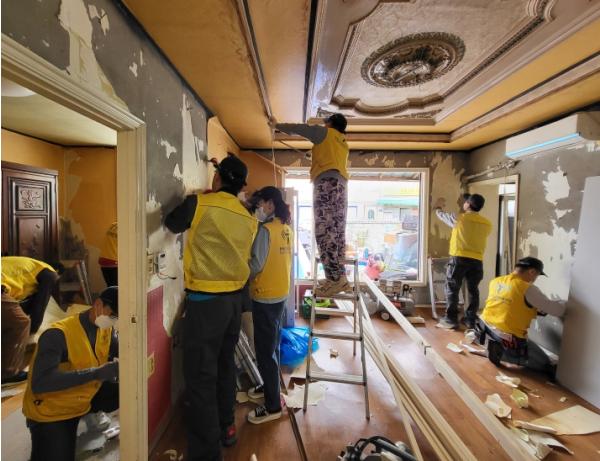 이번 주거환경 개선사업은 지난 15일 1차로, 일동동부교회 디딤돌봉사단에서 화장실 전체 개보수(변기 교체, 벽면 도색, 천장 개보수, 전등 교체)에 인적·물적으로 지원하고, 22일에는 한국기독교연합봉사단 서울광염교회(단장 조현삼)에서 방 3개와 거실 도배·장판 교체, 거실 천장 개보수, 큰방과 거실 창호 교체, 각방의 출입문 도색 등을 실시했다.
