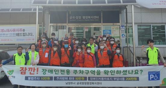 이번 캠페인은 관내 공공시설, 공용주택 등 장애인전용주차구역 불법주정차 신고가 빈번한 지역을 중심으로 진행됐으며, 금곡양정행정복지센터 직원 및 노인일자리 참여자 22명이 참여했다.