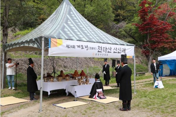 남양주문화원(원장 김경돈)은 지난 22일 천마산군립공원에서 남양주 시민의 안녕과 남양주시의 발전을 기원하기 위해 ‘제24회 천마산 산신제’를 봉행했다.