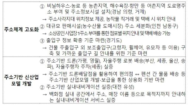 한편, 행정안전부는 2018년부터 주소체계를 고도화하고 주소정보 기반 산업모델 발굴을 위한 시범사업을 공모를 통해 진행해왔다.
