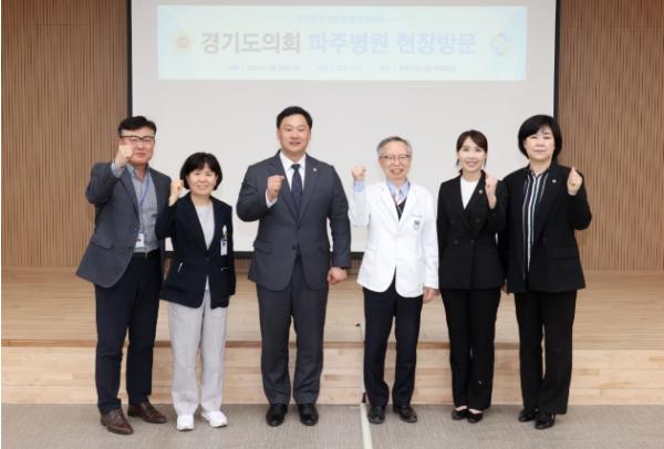 경기도의회 국민의힘 고준호(파주1) 의원과 이인애(고양11) 의원, 심홍순(고양11) 의원은 24일 경기도의료원 파주병원 현장 방문에 나서 코로나19 사태 이후 경영 후유증을 겪고 있는 경기도의료원의 현황과 경기북부지역 의료실태 등을 점검했다.