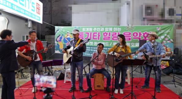 이번 힐링 음악회는 지역상권 활성화 및 골목상권 보호를 위해 마련됐으며, 혼성듀엣 돈비밴드와 통기타 동호회 파란이 참여해 지역 주민들에게 감성 가득한 공연을 선사했다.