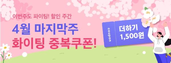 월말 주문 활성화를 위한 ‘평일화이팅’ 이벤트는 배달특급을 통해 2만 원 이상 주문 시 사용할 수 있는 더하기 1,500원 할인을 제공한다. 다른 할인 쿠폰과 함께 사용할 수 있는 더하기 쿠폰으로 기간 내 1인 1회 사용할 수 있다.
