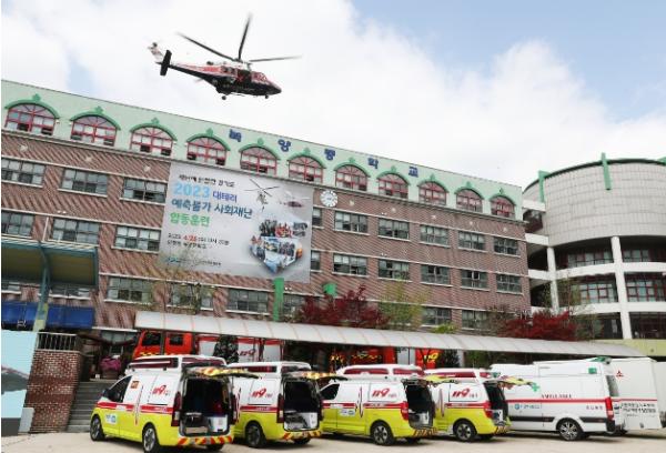 총기인질, 드론 공격 상황에서 경기도 차원의 긴급 구조?구급활동 총력대응에 관계기관의 유기적인 협조체계를 점검했다. 인명 대피 과정에서는 전체 학생과 교직원을 대피시키고, 대피 과정에서 학생들이 의식이 없는 학생들에게 직접 심폐소생술을 실시하는 등 실전을 방불케 했다.