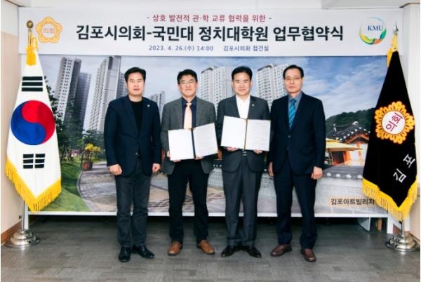 [한국뉴스타임=편집국] 김포시의회가 26일 접견실에서 국민대학교 정치대학원과 상호 발전을 위한 업무 협약을 체결했다.