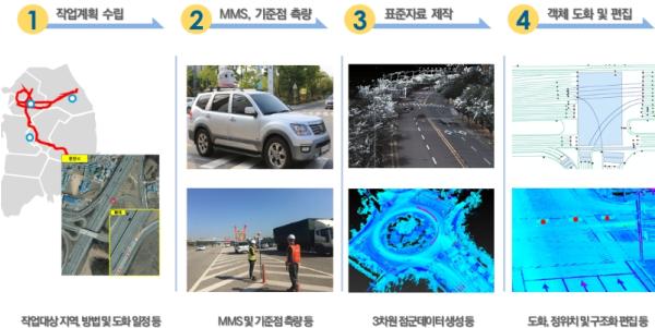 정부는 ’27년 완전자율주행 상용화 일정에 맞추어 도심 및 주요도로를 대상으로 정밀도로지도 구축을 완료할 계획으로 추진하고 있으며, 올해부터는 수도권(서울, 경기, 인천 등)의 특별광역시도 및 지방도(4차로 이상) 구축을 시작으로 충청권, 경상권, 전라권 등으로 범위를 확대하여 제작할 예정이다.