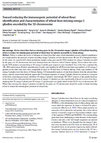 그러나 이번 연구로 일반 밀(6배체)에서는 오메가 5-글리아딘이 1비(B) 이외에도 1디(D) 염색체에 존재하는 것이 확인됐다. 또한, 1비(B) 염색체의 오메가 5-글리아딘이 밀 알레르기 발생의 80~90%에 영향을 미치나 1디(D)의 오메가 5-글리아딘도 10% 내외로 영향을 미친다는 것을 증명했다.