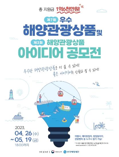 [한국뉴스타임=편집국] 해양수산부와 한국해양재단(이사장 문해남)은 국민의 수요에 맞춘 해양관광상품을 발굴하기 위해 4월 26일부터 5월 19일까지 ‘우수 해양관광상품 및 아이디어 공모전’을 진행한다.