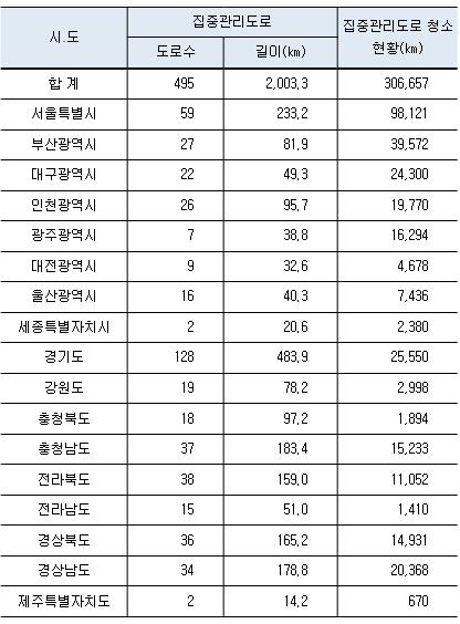 환경부와 지자체는 제4차 미세먼지 계절관리제 동안 전국 495개 도로를 집중관리도로로 선정한 후 4개월 동안 지난 제3차 계절관리제 보다 3만 3,245㎞를 늘려 총 30만 6,657km을 청소했다.