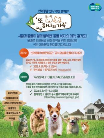 주제 적합성, 상징성, 참신성, 친근성 등을 심사해 최우수상 1명, 우수상 1명, 장려상 2명을 선정해 소정의 상금을 지급할 계획이다. 시상은 6월 초 경기도청 구청사에서 열리는 반려동물 문화축제에서 진행한다.