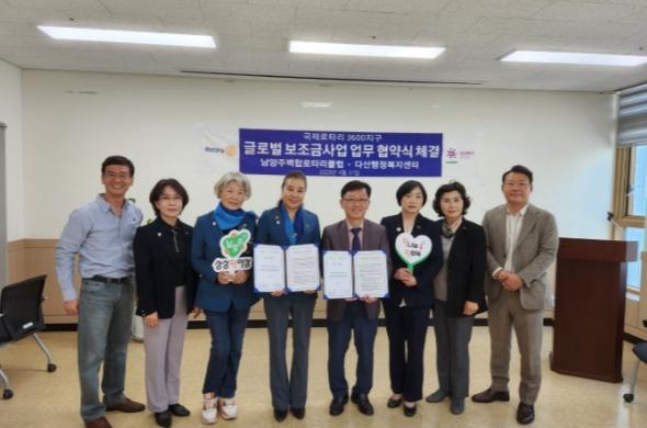 이번 업무협약은 로타리클럽 글로벌 보조금 사업의 일환으로, 다산동 지역 내 취약계층 어르신과 장애인 등을 대상으로 무료로 대상포진 예방접종을 지원해 어르신의 건강한 노후생활 및 장애인의 일상생활 자립 능력 향상에 기여하고자 마련됐다.