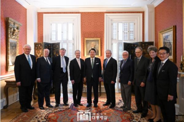 대통령은 전후 냉전의 초입에서 탄생한 한미동맹이 냉전기와 탈냉전기를 함께하고 이제 세계사의 변곡점을 맞아 21세기 동맹으로서의 새로운 출발점에 서 있다고 평가하면서, 오늘 오전 바이든 대통령과의 회담을 통해 자유세계의 공동비전 하에 “미래로 전진하는 행동하는 동맹”을 구현하기 위한 양국 정상의 강한 의지를 확인했다고 설명하고, 한미동맹의 새로운 도약을 위한 미 저명인사들의 의견을 청취했다.