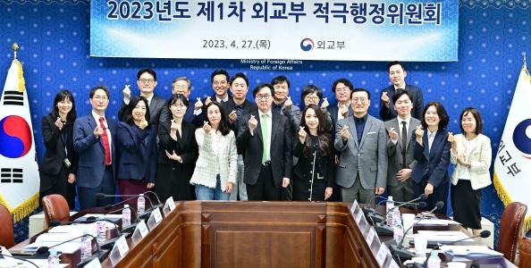 [한국뉴스타임=편집국] 외교부는 4.27일 오후 2023년도 제1차 적극행정위원회를 개최했다. 이날 회의에는 장호진 제1차관(위원장)을 포함하여 7명의 정부위원과 13명의 민간전문가가 참석했다.