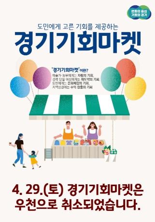 [한국뉴스타임=편집국] 경기도가 29일 수원맘카페, 경기농협과 함께 개최하기로 한 두 번째 경기기회마켓이 우천 예보로 취소됐다.