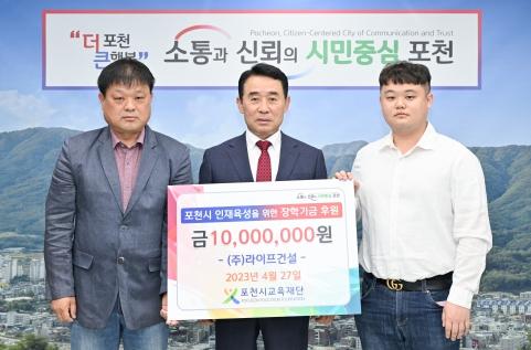 (재)포천시교육재단은 지난 27일 ㈜라이프건설과 ㈜우정식품에서 각 1천만원, ㈜퓨전캐스팅에서 3백만 원을 연이어 기탁했다고 밝혔다.