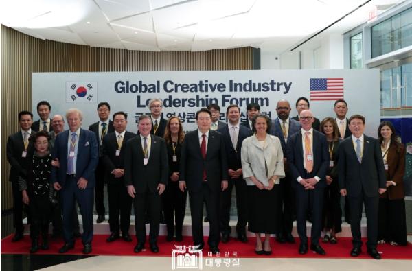 [한국뉴스타임=편집국] 윤석열 대통령은 4. 27일 오후 워싱턴 D.C.에 위치한 미국영화협회(MPA) 건물에서 개최된 ‘글로벌 영상콘텐츠 리더십 포럼’에 참석했다.