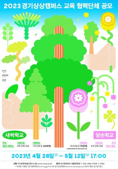 [한국뉴스타임=편집국] 경기문화재단경기상상캠퍼스는 2023년 경기상상캠퍼스 교육 협력단체 공모를 4월 28일부터 5월 12일 17시까지 진행한다고 밝혔다.