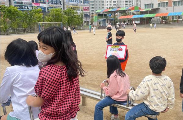 둘째, 학생자치임원들이 봉사하여 점심시간 운동장 안전을 위한 안전요원 활동을 했다. 운동장에서 친구들이 안전하게 놀 수 있도록 선도하는 활동을 통해 봉사의 기쁨도 느끼고, 안전한 학교 만들기에 대한 필요성을 느낄 수 있는 소중한 시간이 됐다.