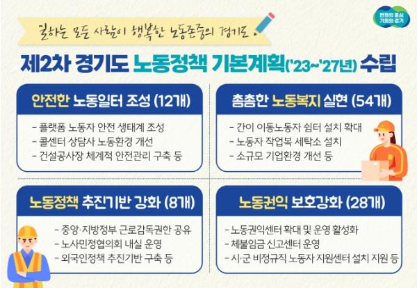 경기도는 이 같은 내용을 담은 제2차 경기도 노동정책 기본계획을 수립·시행한다고 1일 밝혔다.