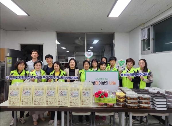 이번 나눔은 올해부터 시작한 [진건형통합돌봄] 진짜 건강한 이웃애(愛)돌봄 반찬 지원 사업에서 협의체 위원들이 직접 만든 닭볶음탕, 소불고기, 돼지양념갈비, 삶은 달걀 등 영양식과 더불어 가정의 달을 맞아 카네이션, 롤케익 등 총 7가지 종류의 선물도 함께 구성됐다.
