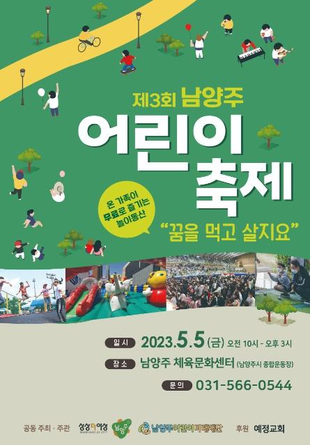 [한국뉴스타임=편집국] 남양주시와 남양주어린이미래재단은 오는 5일 제101회 어린이날을 맞아 남양주체육문화센터에서 '제3회 남양주 어린이 축제'를 개최한다.