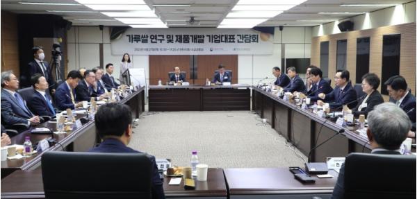 이날 간담회는 가루쌀로 새로운 제품을 연구하고 개발하는 식품기업의 의견을 청취하고 지속 가능한 가루쌀 산업 생태계를 조성해 나가기 위하여 마련됐으며, 가루쌀 연구 및 제품개발에 참여하는 식품업체 17개사가 참석했다.