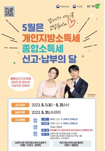[한국뉴스타임=편집국] 남양주시는 개인지방소득세·종합소득세 확정신고의 달을 맞이해 5월 한 달간‘One-stop 신고 도움창구’를 운영한다고 1일 밝혔다.