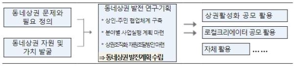 중소벤처기업부는 침체된 지역경제를 살리고, 국민경제의 균형발전을 도모하기 위하여 신(新)사회 경향(트렌드)를 반영한 다양한 사업모형(비즈니스모델)을 적용하여 지역마다 특색있는 자원을 발굴·상업화하여 부가가치를 창출하도록 지원하는 ‘상권세움 사업(프로젝트)’를 추진 중에 있으며, ‘동네상권발전소’는 실제 상권구축을 위한 전 단계로, 그간 정부에서 주도하여 추진하던 상권구축사업을 민간주도로 전환하여 민간 전문가들이 창의적인 아이디어와 사업모형(비즈니스모델)을 제시하고 지역상인·지역민·지자체 등 지역주체들이 함께 참여하여 지역 현안문제 해결과 상권 구축·발전전략을 수립하고 검증토록 하여 상권형성 초기단계부터 철저히 준비된 사업추진을 유도하여 사업실패율을 낮출 수 있게 된다.