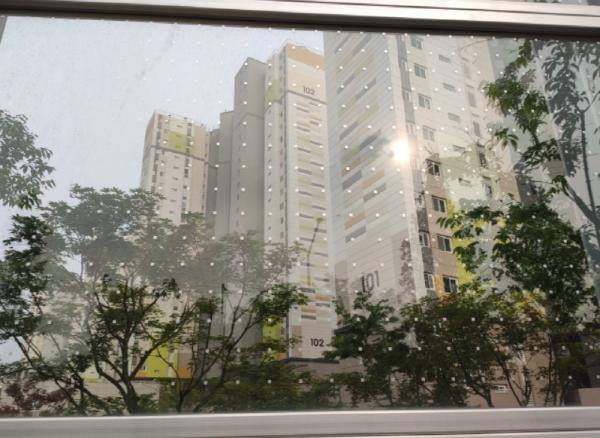 이번에 개선 시공한 원동 한양수자인 아파트 주변 방음벽에는 환경부 가이드 라인에 적합한 가로 10cm, 세로 5cm 간격의 점이 인쇄된 필름을 부착했다.