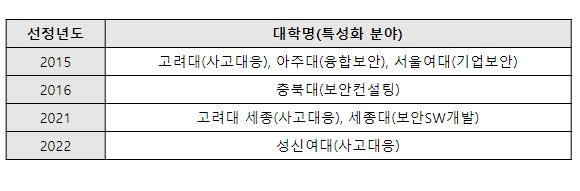 올해 신규 2개교의 특성화목표는 △보안관리, △사고대응, △보안SW개발 직무 특화로 한정되며, 주관기관(대학)은 3개 직무 중 특성화목표 중 선택하여 공모에 지원해야 한다.