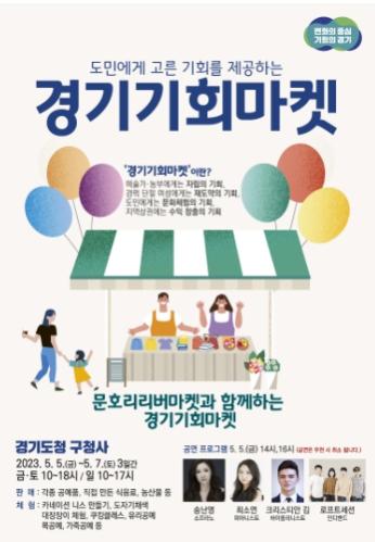 [한국뉴스타임=편집국] 경기도는 5월 5일부터 7일까지 수원시 팔달구에 있는 옛 경기도청사에서 문호리리버마켓과 함께하는 두 번째 경기기회마켓을 개최한다고 3일 밝혔다.