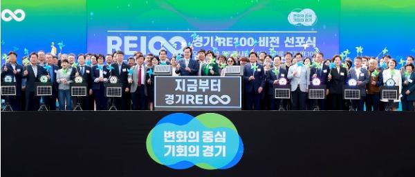 4월 24일에는 시흥 시화국가산업단지에서 ‘경기 RE100 비전 선포식’이 열렸다. 김동연 경기도지사는 이날 ‘2030년 신재생에너지 발전 비중 30% 달성, 온실가스 40% 감축’ 목표 달성을 위한 경기 RE100의 4대 방향, 13개 전략과제를 발표했다. 김 지사는 “탄소중립 관련 중앙정부의 소극적인 역할이 우려되는 상황에서 경기도는 추종자가 아닌 선도자 역할을 할 것”이라며 “오늘의 기후 위기를 내일의 성장 기회로 전환할 수 있는 비전을 제시하고 기업과 도민들의 지지와 참여를 이끌어나가도록 하겠다”라고 밝혔다.