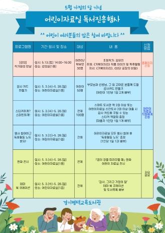 3일부터 28일까지 진행되는 이번 행사는 학부모와 어린이가 책읽는 습관을 들이고 가족 간 유대를 강화할 수 있는 프로그램으로 구성됐다.