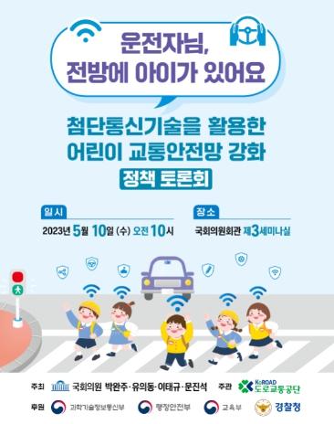 [한국뉴스타임=편집국] 5월 가정의 달을 맞아 박완주 의원(천안을?3선)과 유의동 의원(평택을?3선) ? 이태규 의원(비례대표) ? 문진석 의원(천안갑?초선)이 공동주최하고, 도로교통공단이 주관하는 『운전자님, 전방에 아이가 있어요 ? 첨단통신기술을 활용한 어린이 교통안전망 강화 토론회』가 10일 개최될 예정이다.