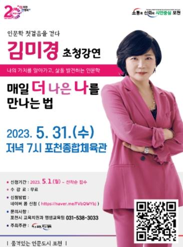 한편, 이번 ‘인문학 첫걸음을 걷다’ 강연은 포천시민이면 누구나 무료로 참여가 가능하며, 네이버폼을 통해 사전 신청할 수 있다.