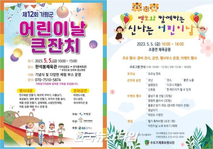 가평군이 오는 5월 5일 제101회 어린이날을 맞아 개최되는「제12회 가평군 어린이날 큰잔치」 행사 장소를 당초 자라섬 중도에서 한석봉체육관 실내로 변경하여 개최한다고 알렸다.