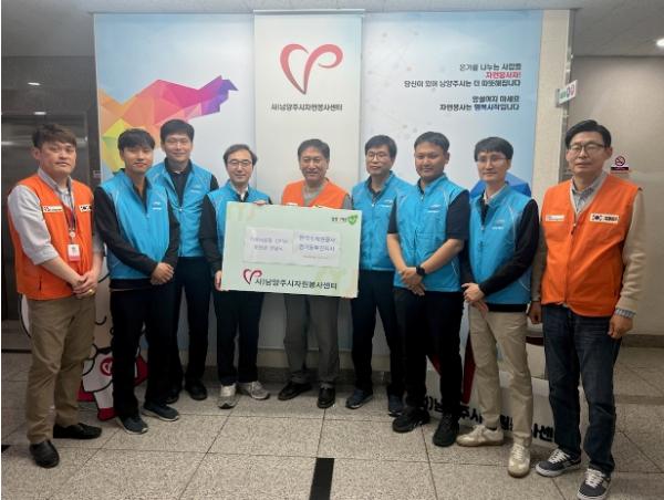 [한국뉴스타임=편집국] 한국수자원공사 경기동북권지사 임직원들은 오늘(5/3, 수) 남양주시자원봉사센터(이사장 주광덕)에서 진행하고 있는 사회공헌사업 프로그램에 참여하여 ‘이웃사랑나눔회’에 후원금을 전달하고, 호평동 무료급식소에서 배식 봉사활동을 펼쳤다.