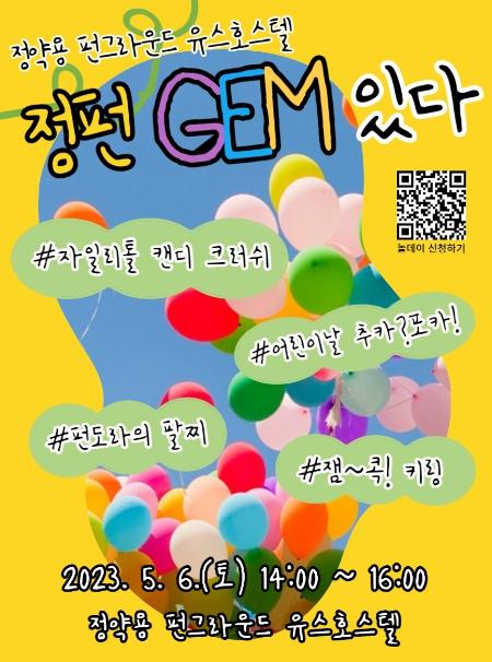 [한국뉴스타임=편집국] 남양주도시공사 정약용 펀그라운드(남양주유스호스텔)에서는 어린이날을 맞이하여 오는 5월 6일(토) 청소년들에게 다양하고 유익한 체험활동 기회를 통해 건전한 여가생활과 더불어 개인의 발전과 성장을 도모하기 위한 ‘정펀 잼(GEM)있다!’를 운영한다.